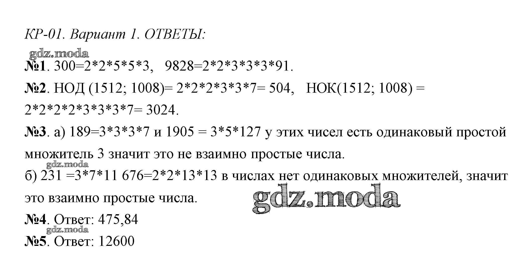 ОТВЕТ на задание № 1 Контрольно-измерительные материалы (КИМ) по Математике 6 класс Попова