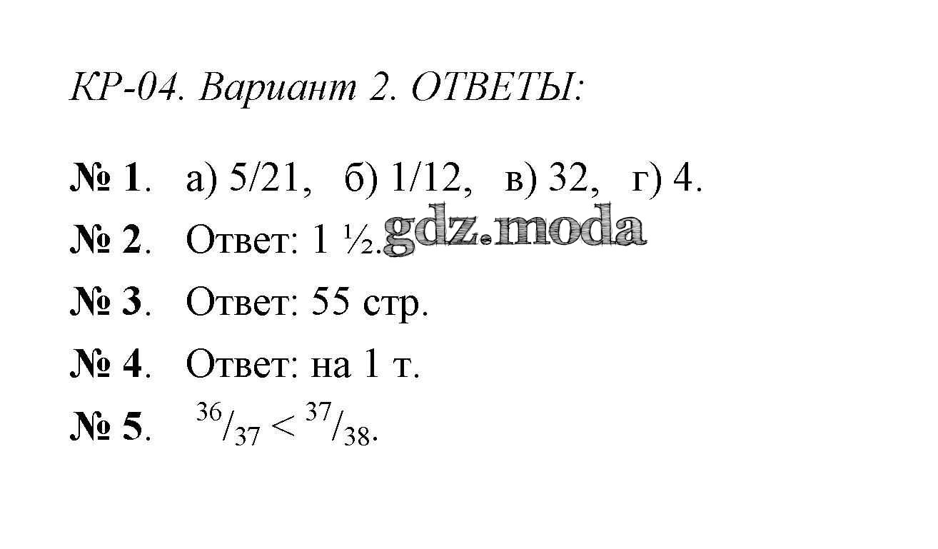 ОТВЕТ на задание № 2 Контрольно-измерительные материалы (КИМ) по Математике 6 класс Попова