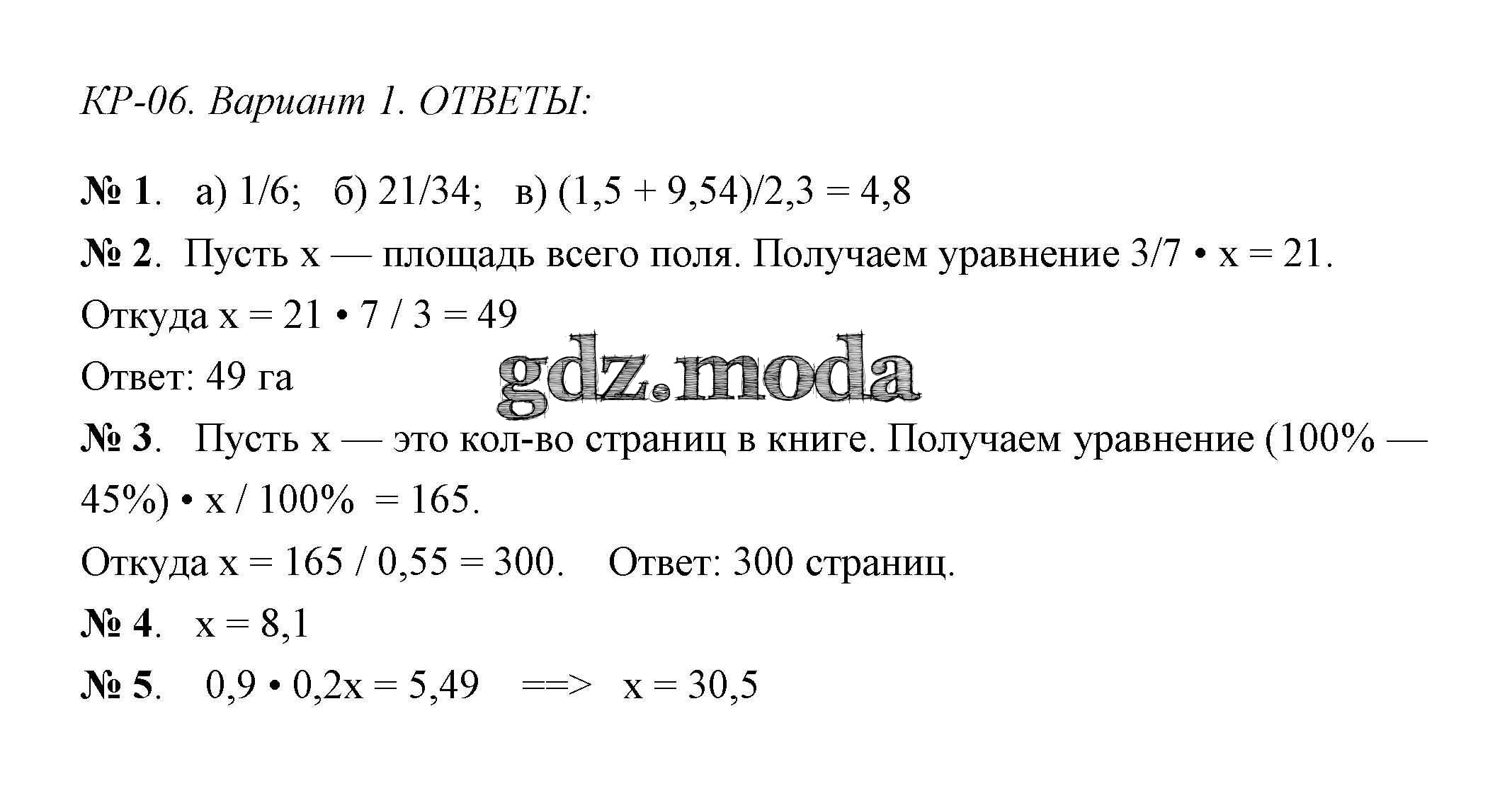 ОТВЕТ на задание № 1 Контрольно-измерительные материалы (КИМ) по Математике 6 класс Попова