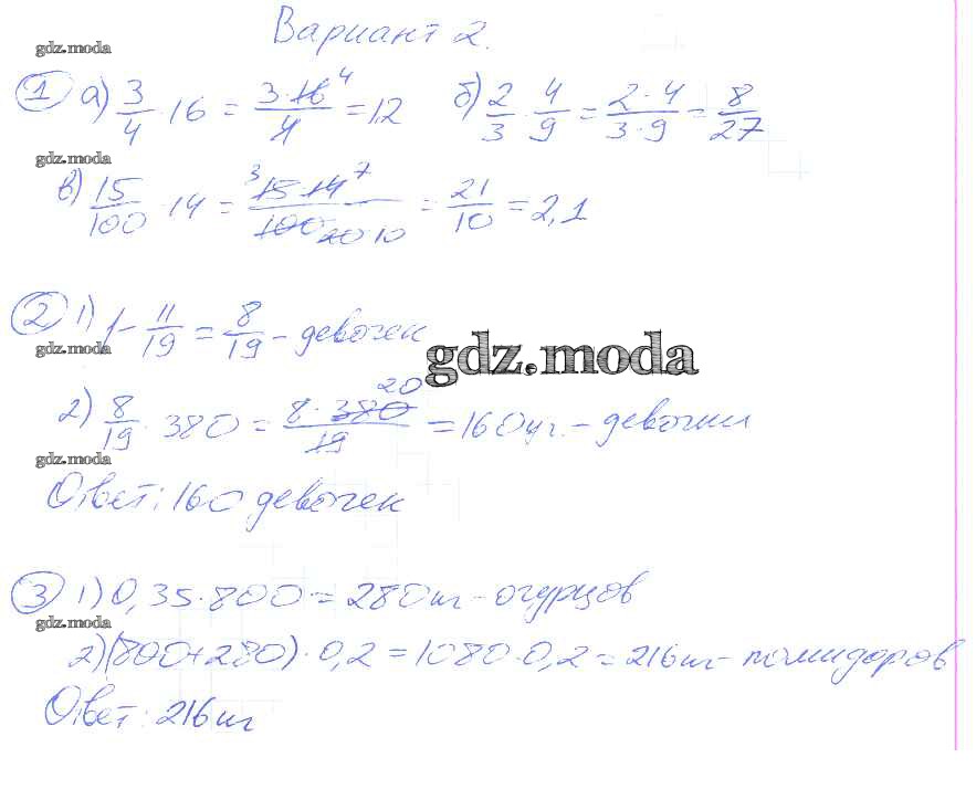ГДЗ решение к заданию № 2 Математика 6 класс контрольные и самостоятельные работы Попов М.А. ( к уч. Виленкина Н.Я.) Экзамен 2017 ФГОС бесплатно на гдз.мода!