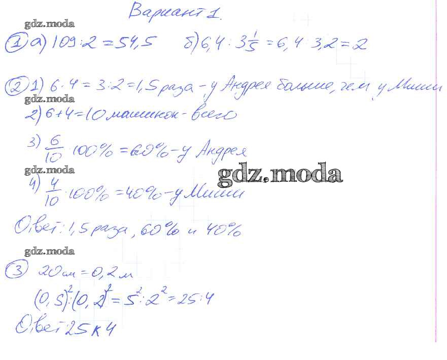ГДЗ решение к заданию № 1 Математика 6 класс контрольные и самостоятельные работы Попов М.А. ( к уч. Виленкина Н.Я.) Экзамен 2017 ФГОС бесплатно на гдз.мода!