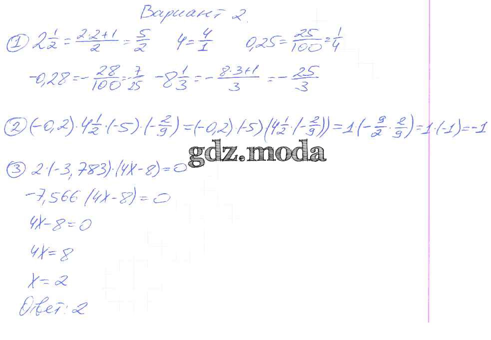 ГДЗ решение к заданию № 2 Математика 6 класс контрольные и самостоятельные работы Попов М.А. ( к уч. Виленкина Н.Я.) Экзамен 2017 ФГОС бесплатно на гдз.мода!