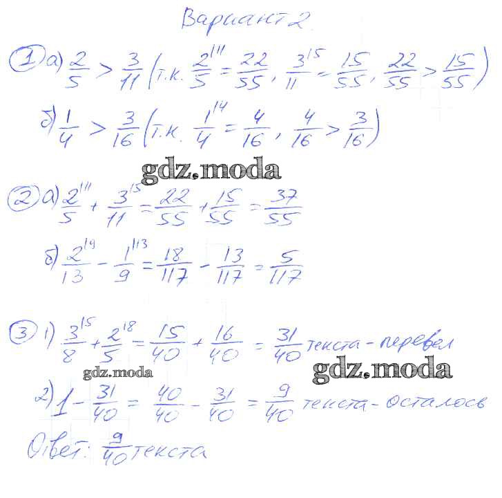 ГДЗ решение к заданию № 2 Математика 6 класс контрольные и самостоятельные работы Попов М.А. ( к уч. Виленкина Н.Я.) Экзамен 2017 ФГОС бесплатно на гдз.мода!