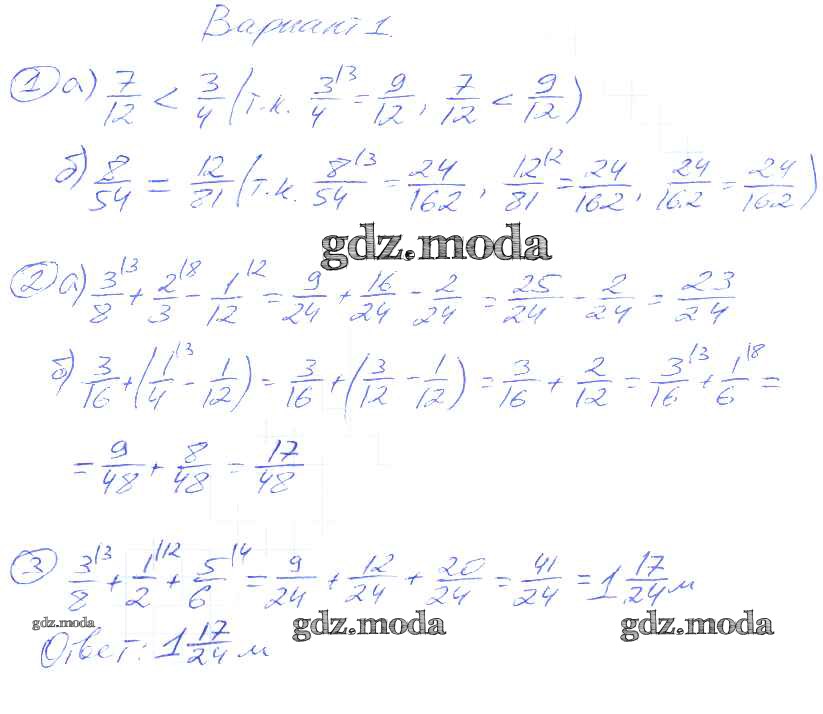 ГДЗ решение к заданию № 1 Математика 6 класс контрольные и самостоятельные работы Попов М.А. ( к уч. Виленкина Н.Я.) Экзамен 2017 ФГОС бесплатно на гдз.мода!