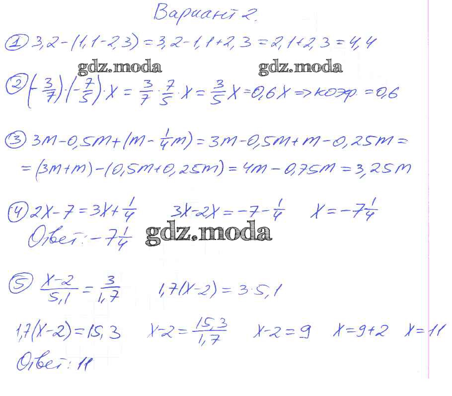ГДЗ решение к заданию № 2 Математика 6 класс контрольные и самостоятельные работы Попов М.А. ( к уч. Виленкина Н.Я.) Экзамен 2017 ФГОС бесплатно на гдз.мода!