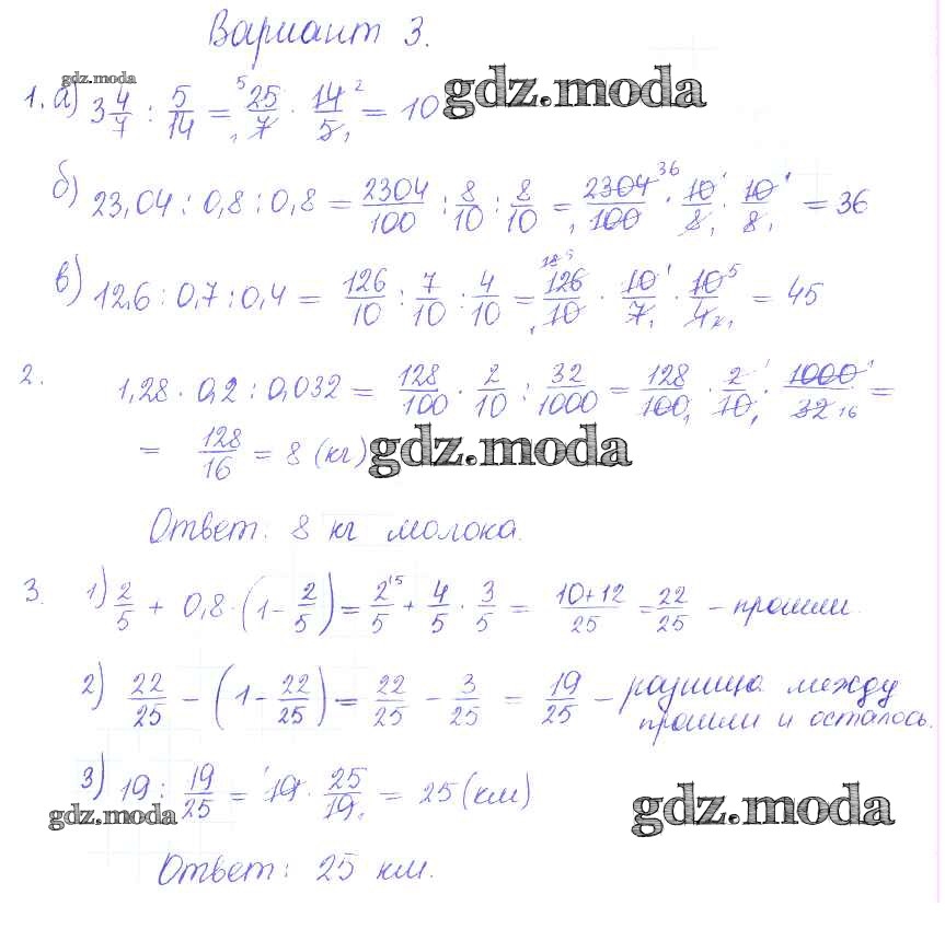 ГДЗ решение к заданию № 3 Математика 6 класс контрольные и самостоятельные работы Журавлев С.Г. Экзамен 2015 ФГОС бесплатно на гдз.мода!
