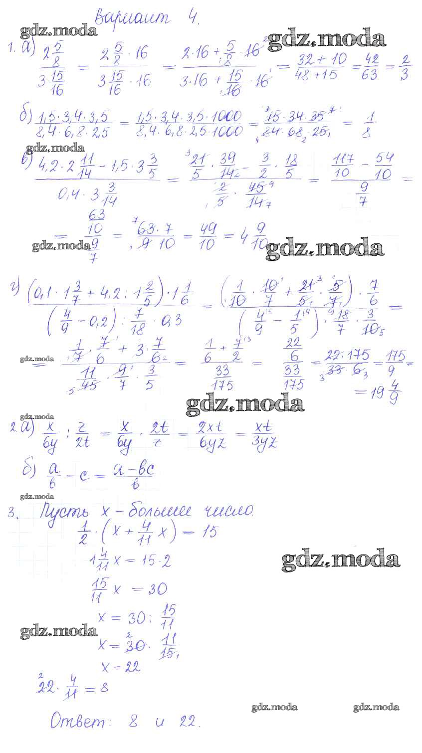 ГДЗ решение к заданию № 4 Математика 6 класс контрольные и самостоятельные работы Журавлев С.Г. Экзамен 2015 ФГОС бесплатно на гдз.мода!