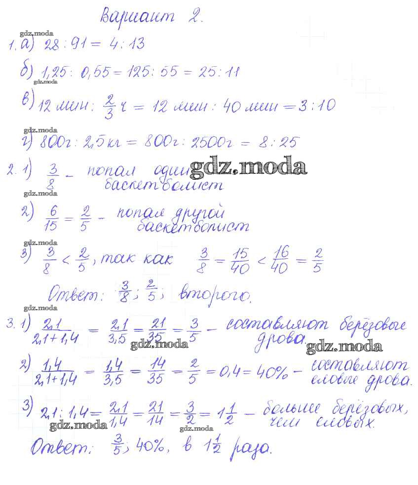 ГДЗ решение к заданию № 2 Математика 6 класс контрольные и самостоятельные работы Журавлев С.Г. Экзамен 2015 ФГОС бесплатно на гдз.мода!