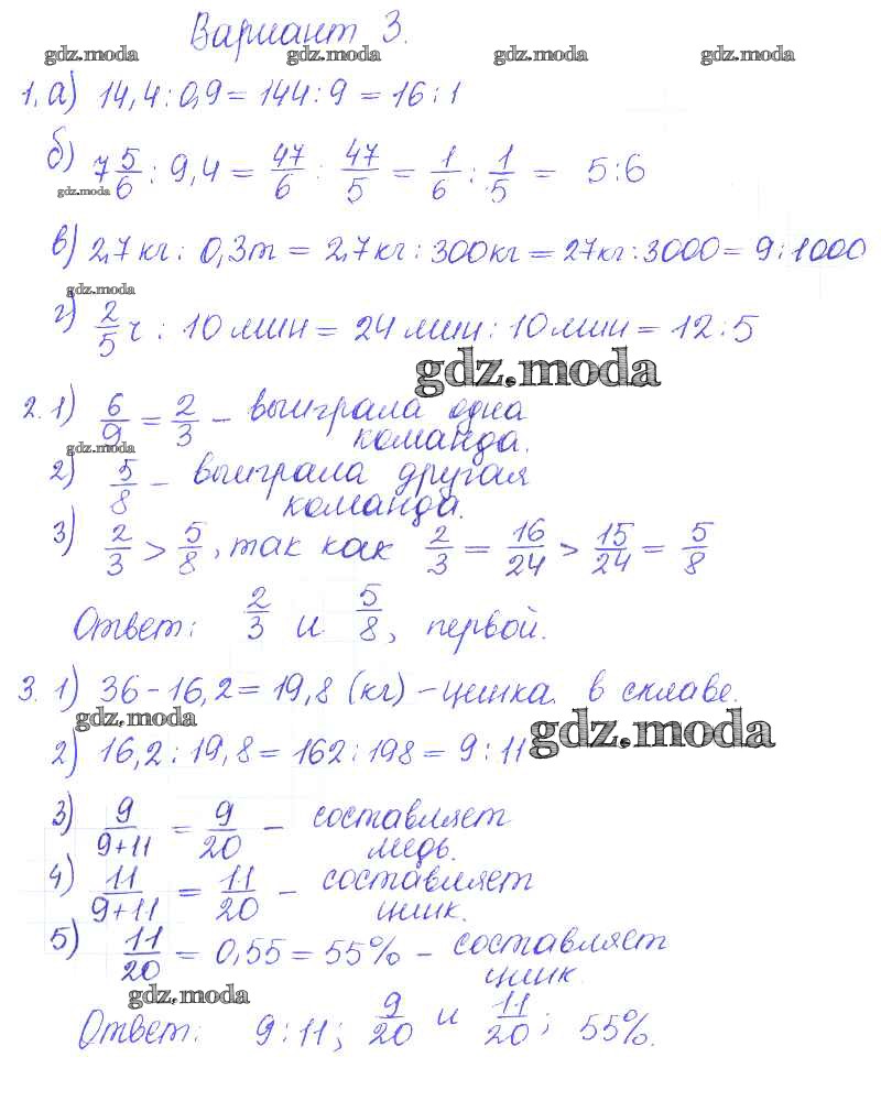 ГДЗ решение к заданию № 3 Математика 6 класс контрольные и самостоятельные работы Журавлев С.Г. Экзамен 2015 ФГОС бесплатно на гдз.мода!