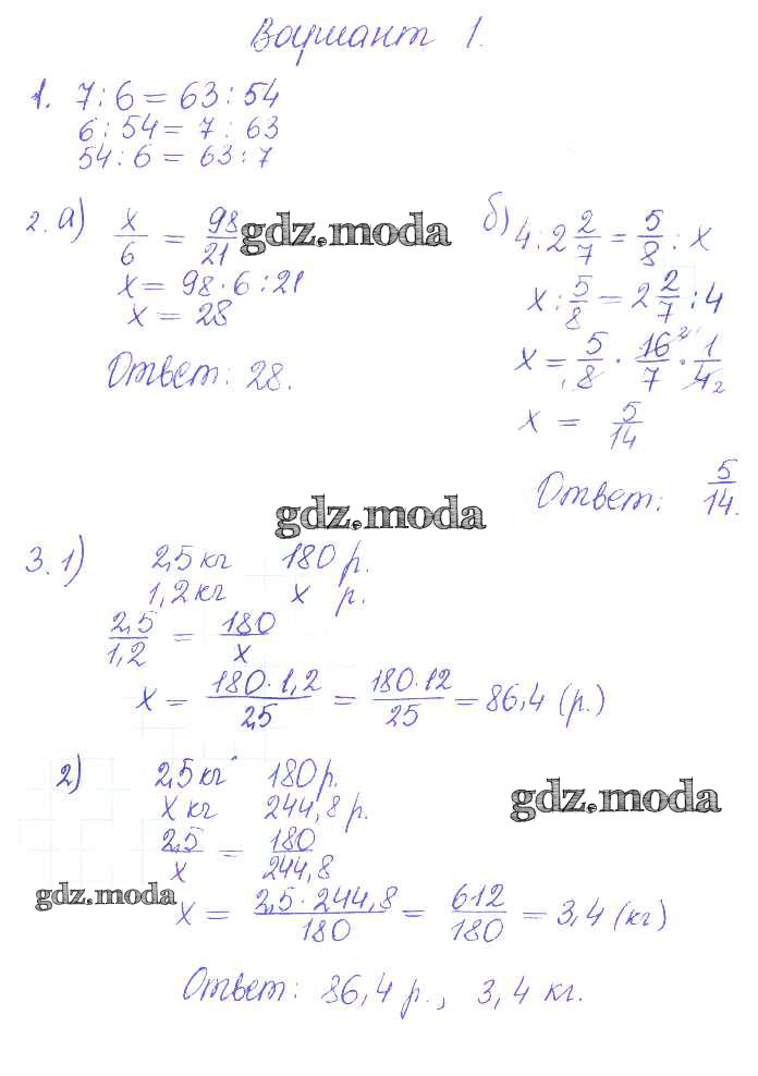 ГДЗ решение к заданию № 1 Математика 6 класс контрольные и самостоятельные работы Журавлев С.Г. Экзамен 2015 ФГОС бесплатно на гдз.мода!