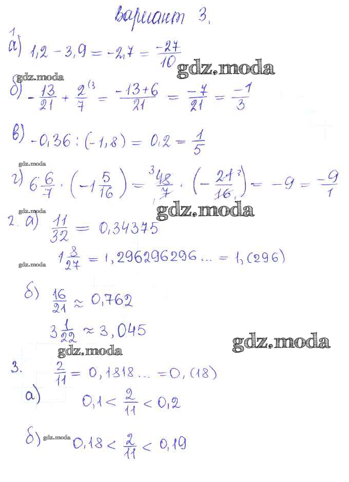 ГДЗ решение к заданию № 3 Математика 6 класс контрольные и самостоятельные работы Журавлев С.Г. Экзамен 2015 ФГОС бесплатно на гдз.мода!