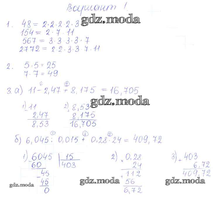 ГДЗ решение к заданию № 1 Математика 6 класс контрольные и самостоятельные работы Журавлев С.Г. Экзамен 2015 ФГОС бесплатно на гдз.мода!