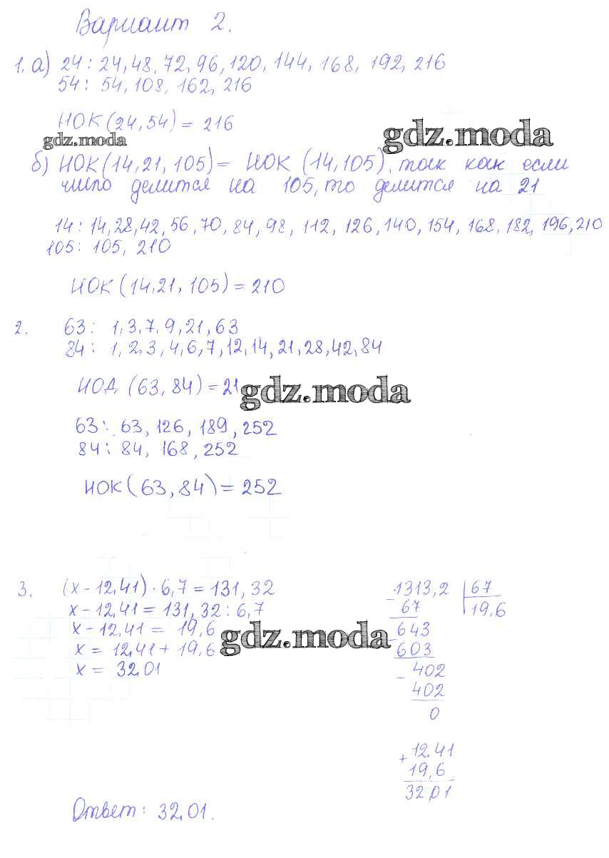ГДЗ решение к заданию № 2 Математика 6 класс контрольные и самостоятельные работы Журавлев С.Г. Экзамен 2015 ФГОС бесплатно на гдз.мода!