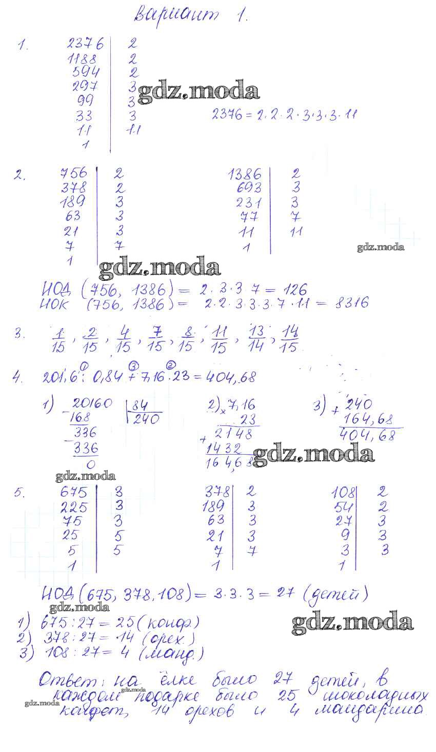 ГДЗ решение к заданию № 1 Математика 6 класс контрольные и самостоятельные работы Журавлев С.Г. Экзамен 2015 ФГОС бесплатно на гдз.мода!