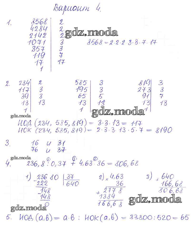 ГДЗ решение к заданию № 4 Математика 6 класс контрольные и самостоятельные работы Журавлев С.Г. Экзамен 2015 ФГОС бесплатно на гдз.мода!