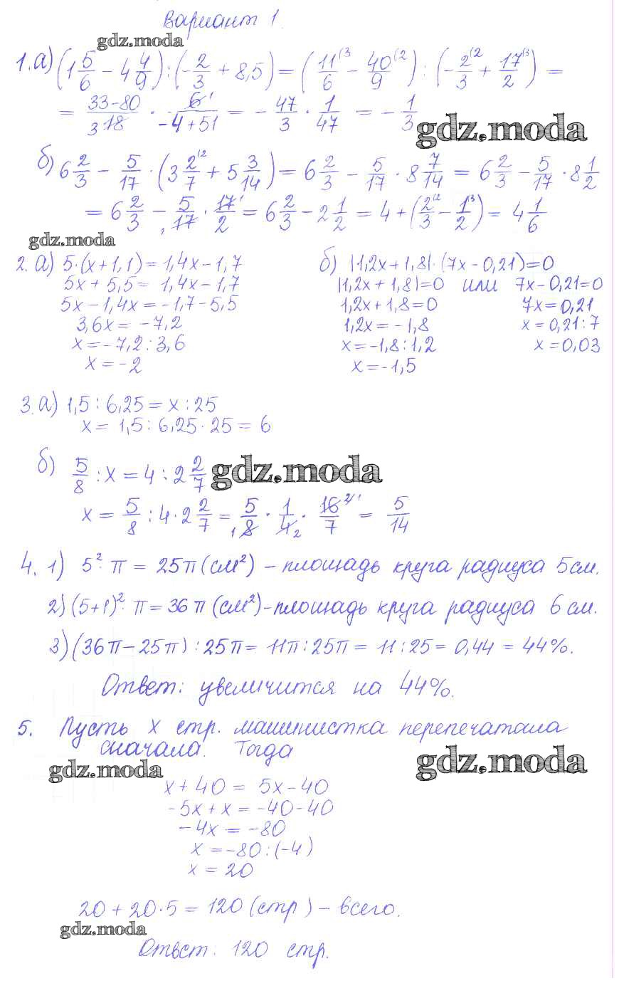ГДЗ решение к заданию № 1 Математика 6 класс контрольные и самостоятельные работы Журавлев С.Г. Экзамен 2015 ФГОС бесплатно на гдз.мода!