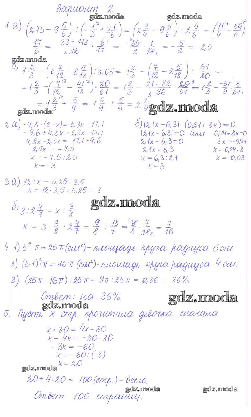 ГДЗ решение к заданию № 2 Математика 6 класс контрольные и самостоятельные работы Журавлев С.Г. Экзамен 2015 ФГОС бесплатно на гдз.мода!
