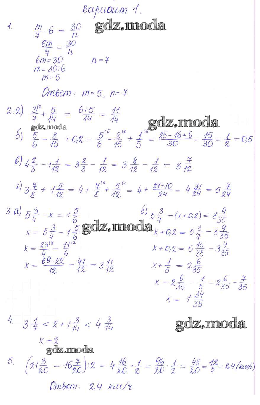 ОТВЕТ на задание № 1 Контрольные и самостоятельные работы по Математике 6 класс Журавлев УМК
