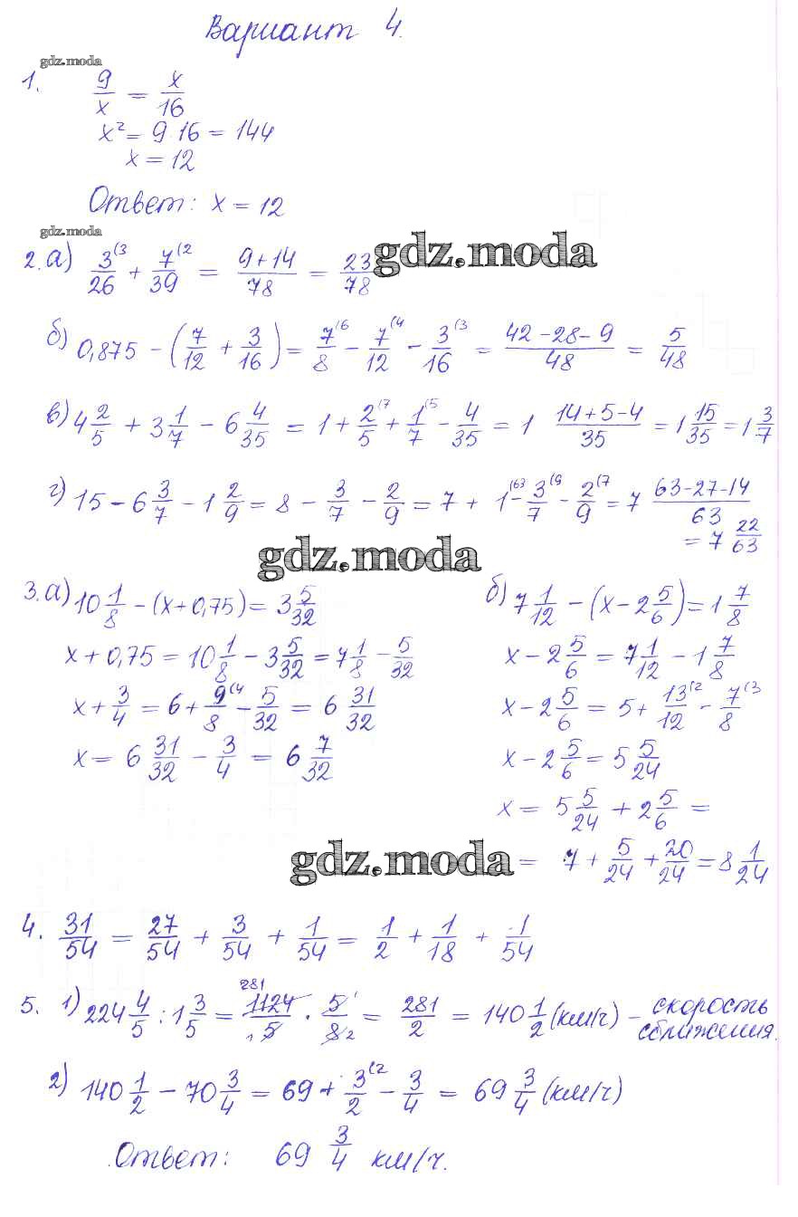 ГДЗ решение к заданию № 4 Математика 6 класс контрольные и самостоятельные работы Журавлев С.Г. Экзамен 2015 ФГОС бесплатно на гдз.мода!