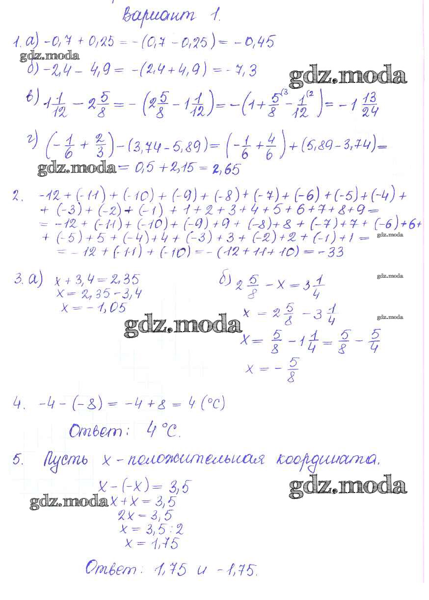 ОТВЕТ на задание № 1 Контрольные и самостоятельные работы по Математике 6 класс Журавлев УМК