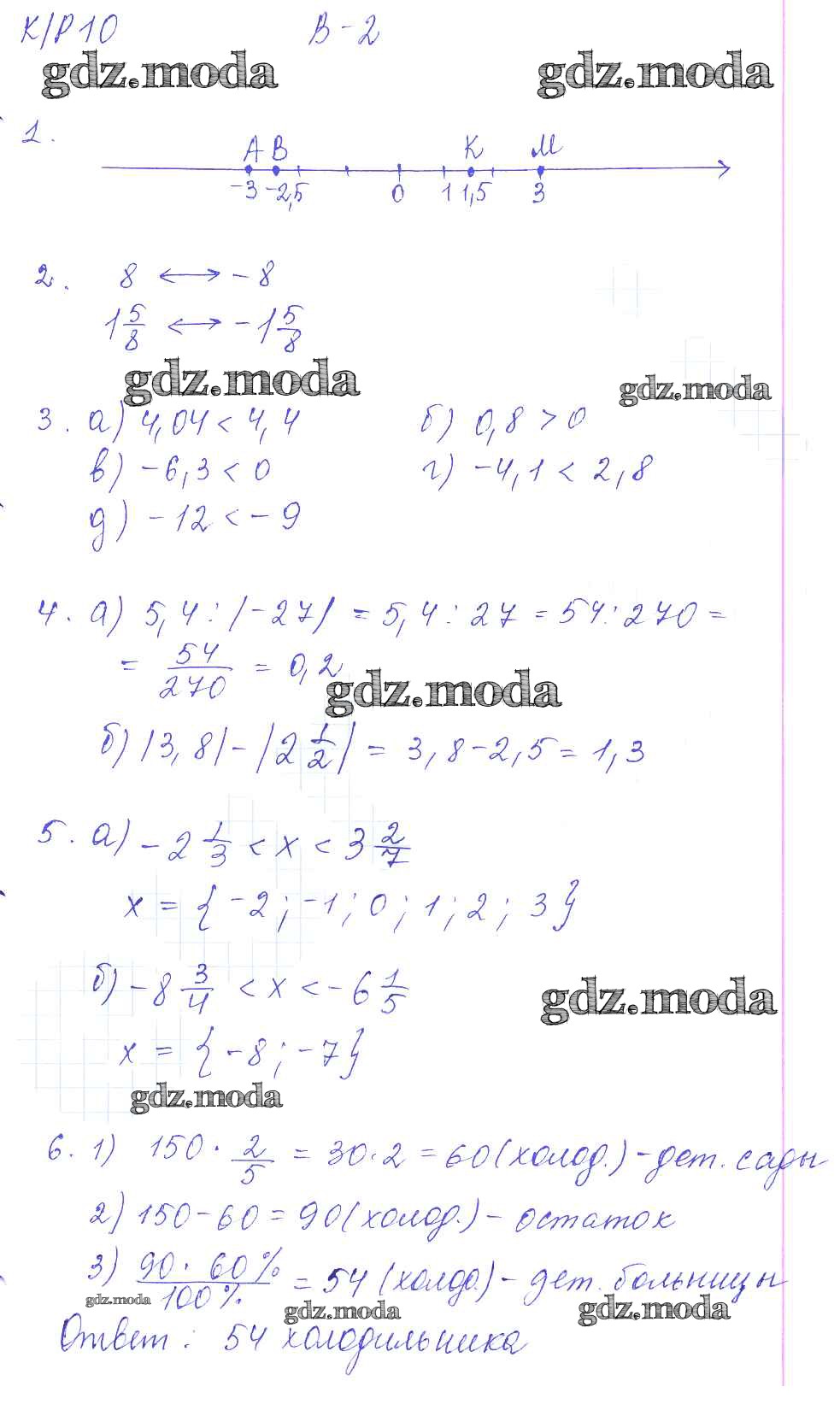 ГДЗ решение к заданию № 2 Математика 6 класс контрольные работы Дудницын Ю.П. Экзамен 2013 ФГОС бесплатно на гдз.мода!