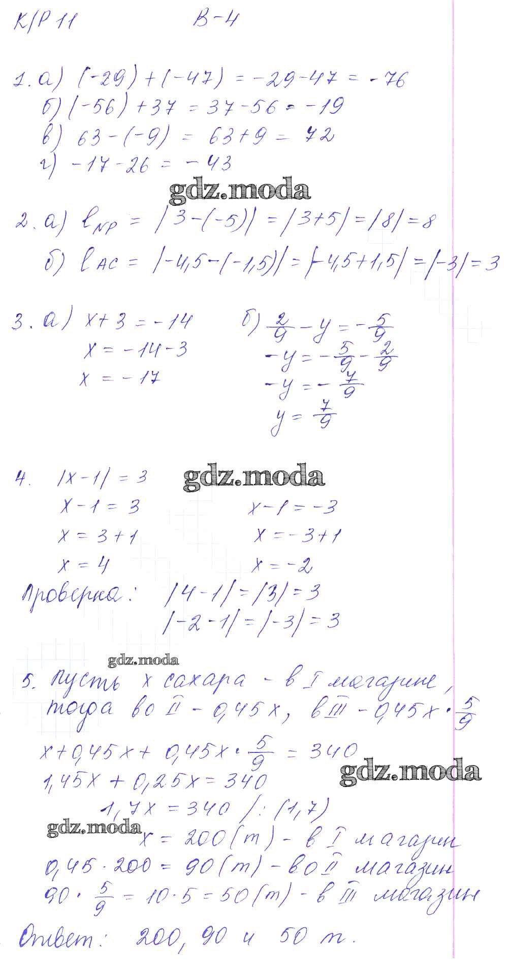 ГДЗ решение к заданию № 4 Математика 6 класс контрольные работы Дудницын Ю.П. Экзамен 2013 ФГОС бесплатно на гдз.мода!
