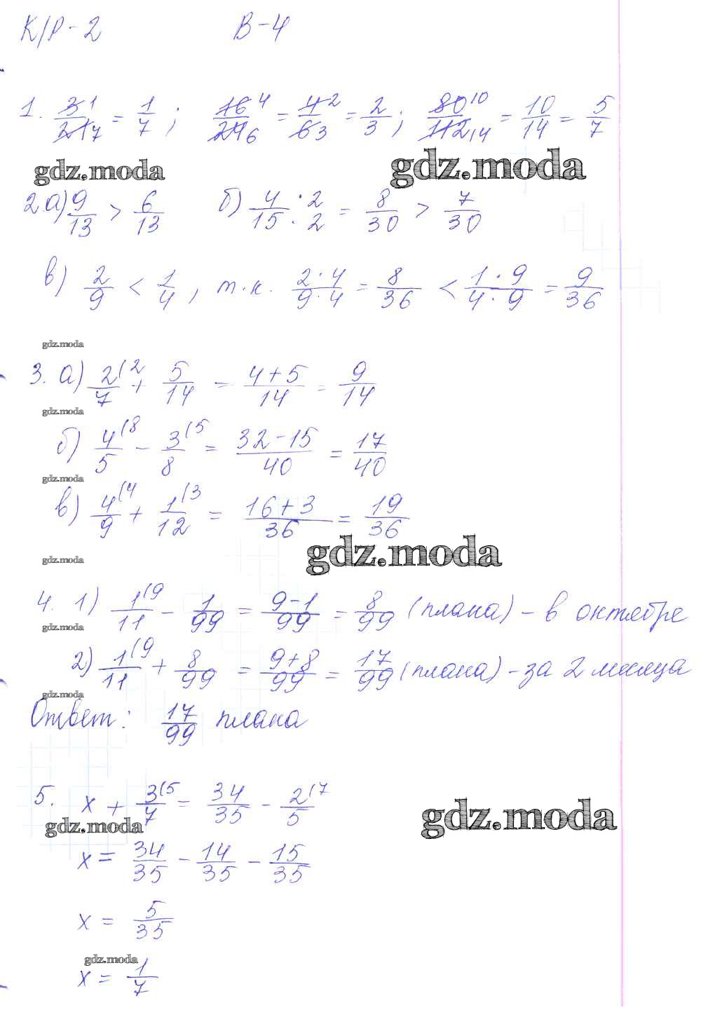 ОТВЕТ на задание № 4 Контрольные работы по Математике 6 класс Дудницын УМК