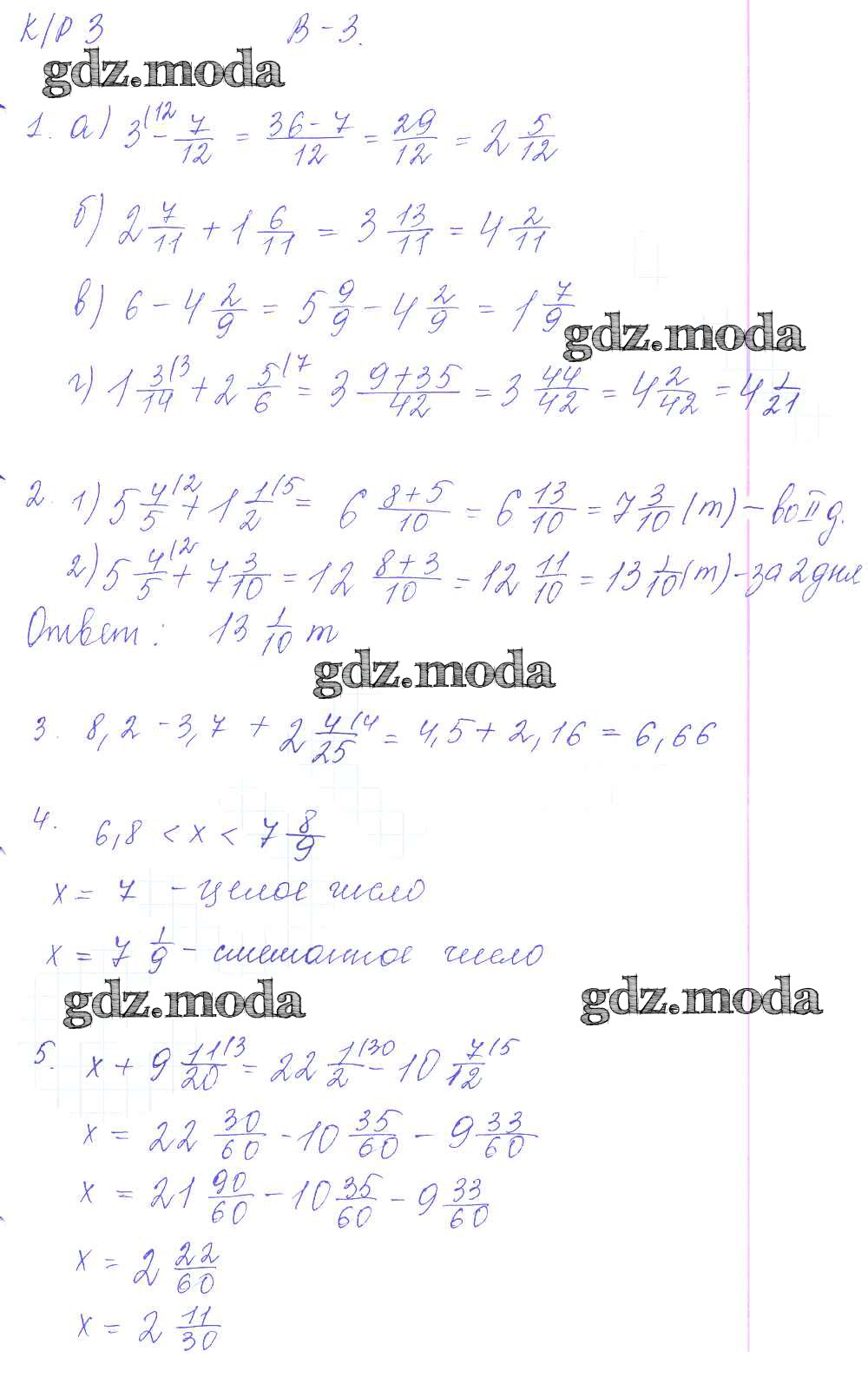 ГДЗ решение к заданию № 3 Математика 6 класс контрольные работы Дудницын Ю.П. Экзамен 2013 ФГОС бесплатно на гдз.мода!