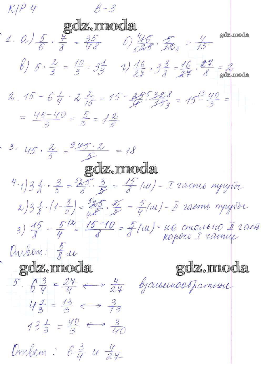 ОТВЕТ на задание № 3 Контрольные работы по Математике 6 класс Дудницын УМК