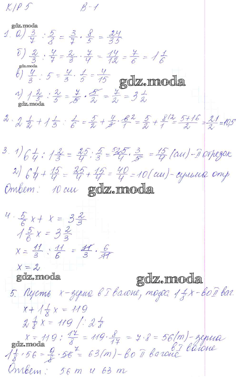 ОТВЕТ на задание № 1 Контрольные работы по Математике 6 класс Дудницын УМК