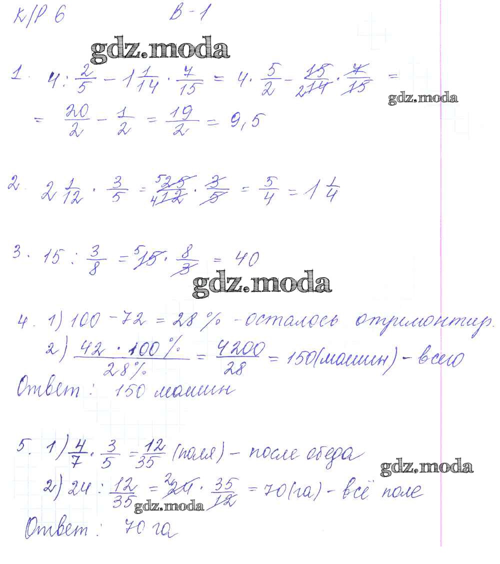 ОТВЕТ на задание № 1 Контрольные работы по Математике 6 класс Дудницын УМК