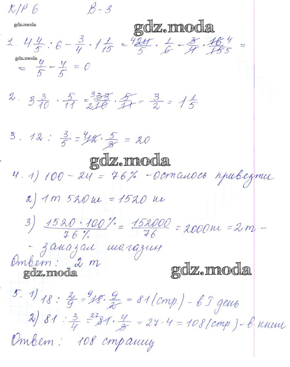 ОТВЕТ на задание № 3 Контрольные работы по Математике 6 класс Дудницын УМК