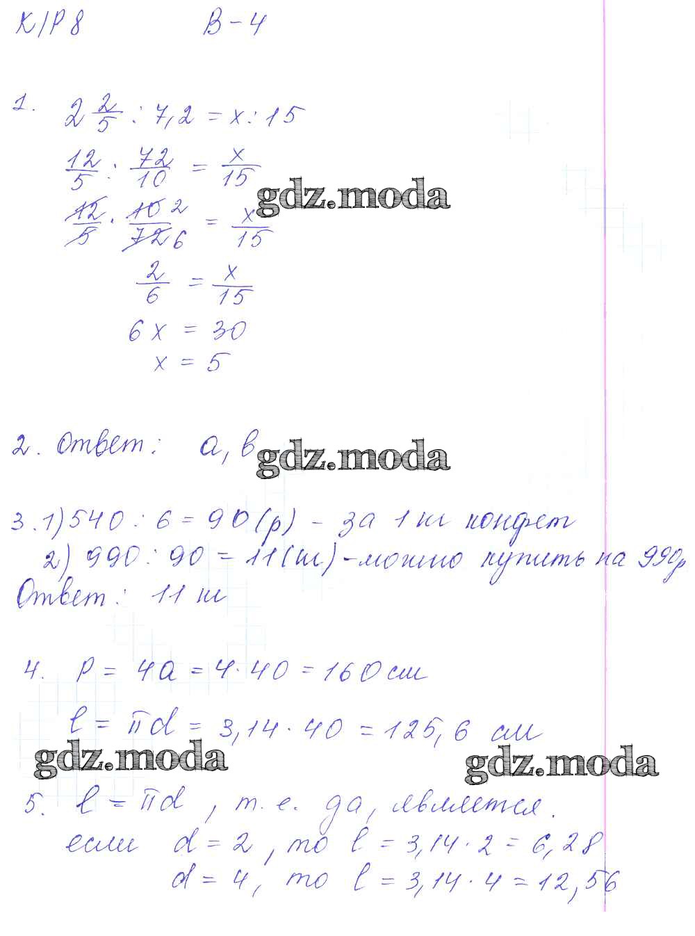 ГДЗ решение к заданию № 4 Математика 6 класс контрольные работы Дудницын Ю.П. Экзамен 2013 ФГОС бесплатно на гдз.мода!