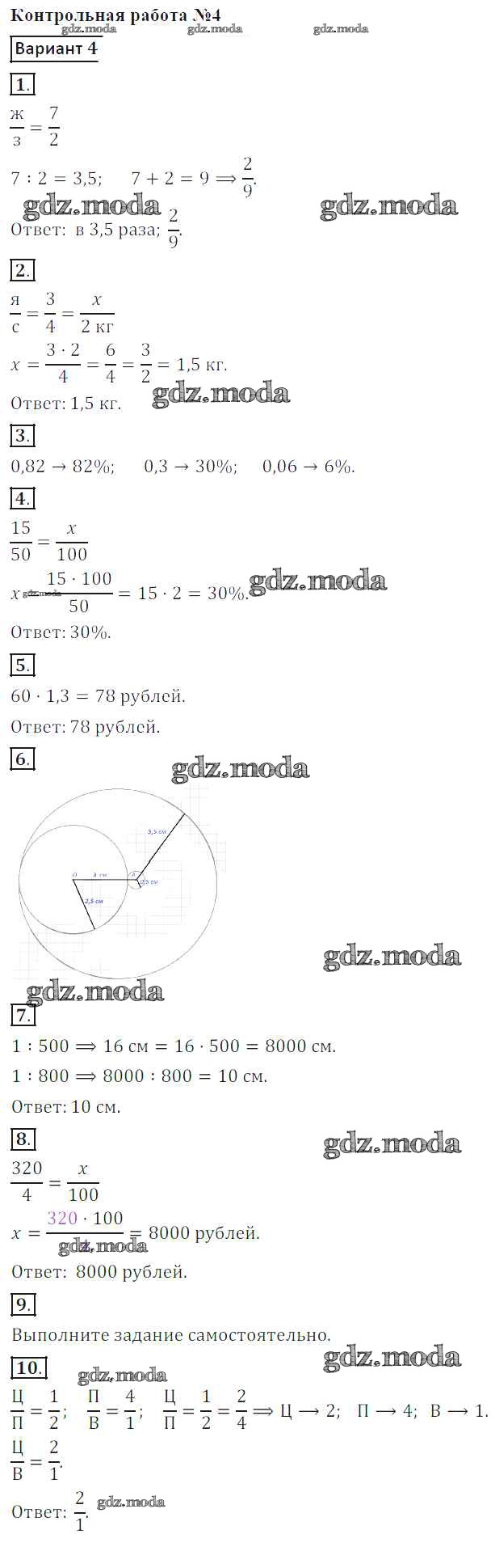 ГДЗ решение к заданию № 4 Математика 6 класс контрольные работы Кузнецова Л.В. Просвещение 2017 ФГОС бесплатно на гдз.мода!