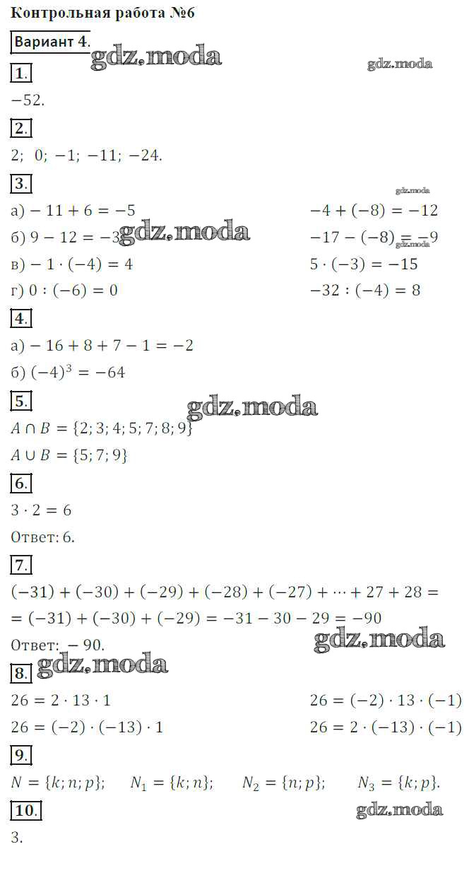 ГДЗ решение к заданию № 4 Математика 6 класс контрольные работы Кузнецова Л.В. Просвещение 2017 ФГОС бесплатно на гдз.мода!
