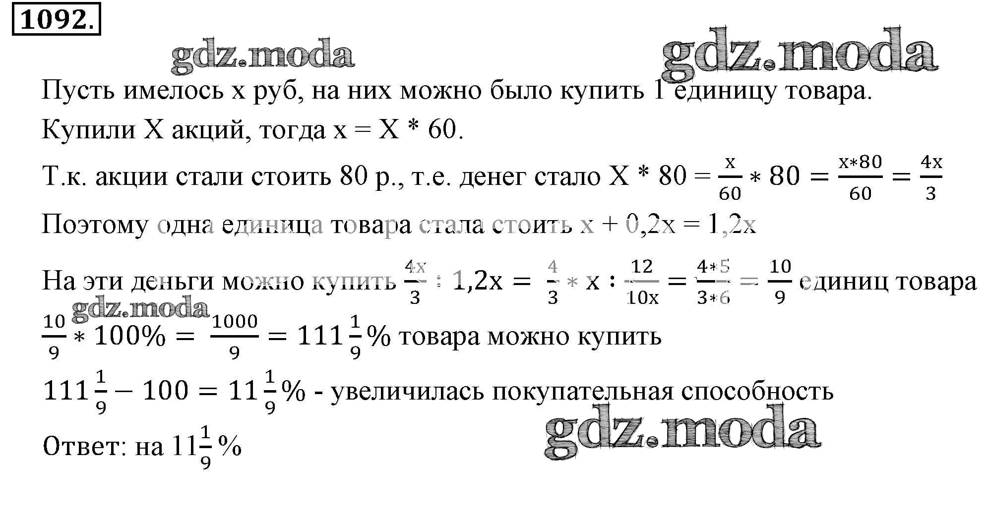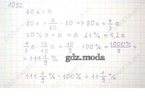 ОТВЕТ на задание № 1092 Учебник по Математике 6 класс Никольский МГУ - школе