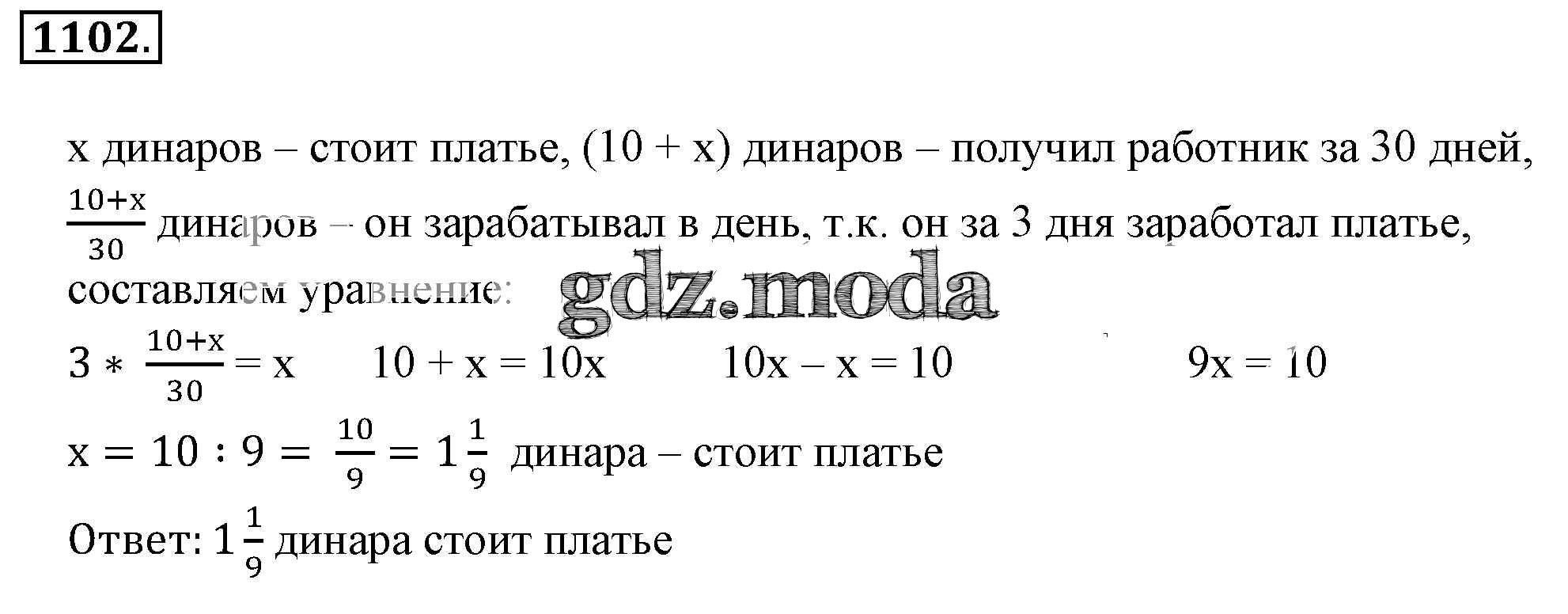 ОТВЕТ на задание № 1102 Учебник по Математике 6 класс Никольский МГУ - школе