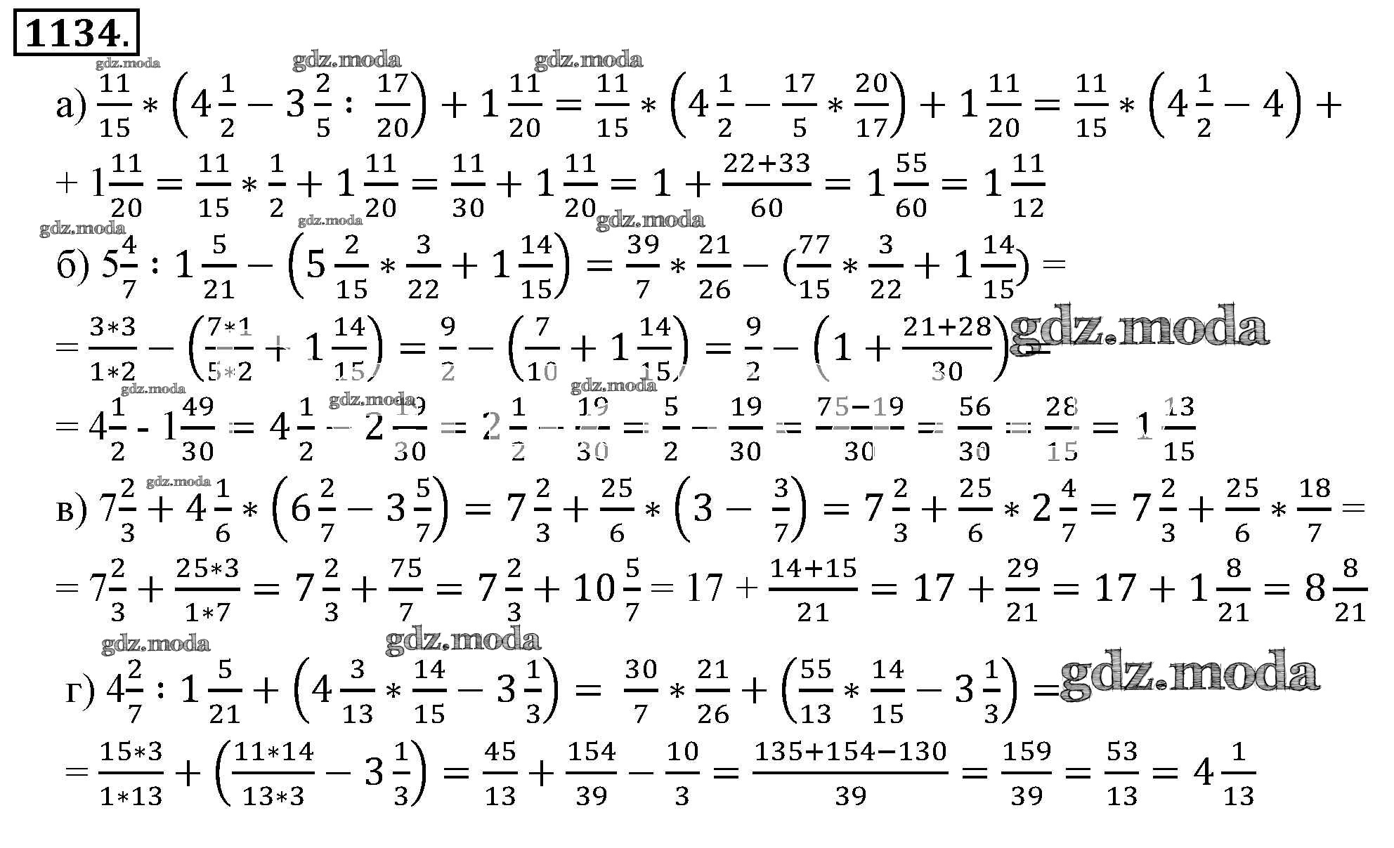 ОТВЕТ на задание № 1134 Учебник по Математике 6 класс Никольский МГУ - школе