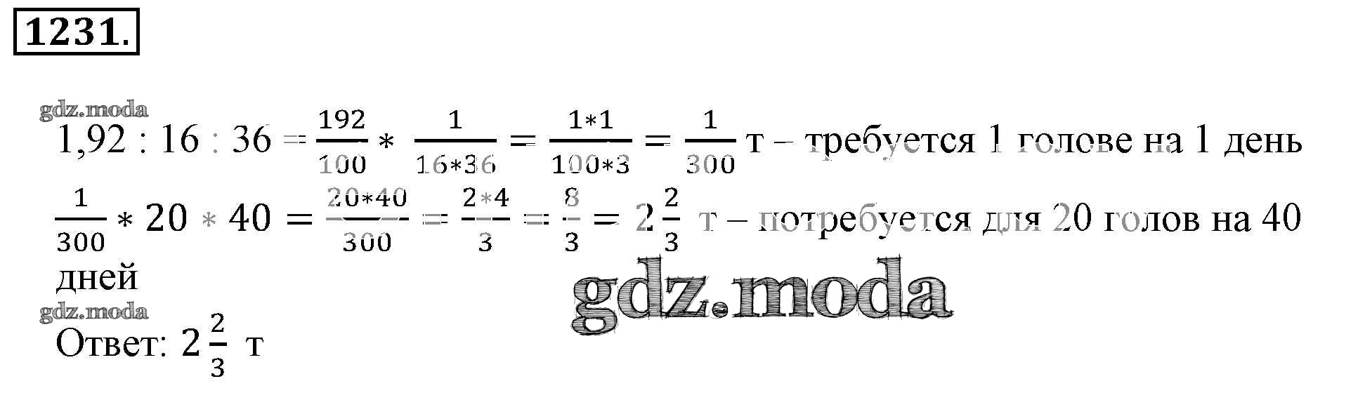 ОТВЕТ на задание № 1231 Учебник по Математике 6 класс Никольский МГУ - школе