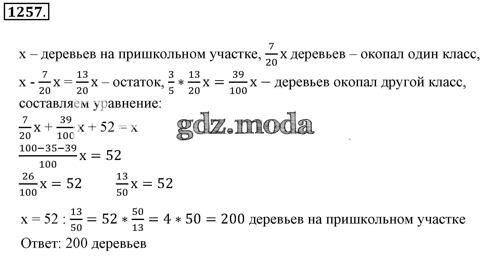 ОТВЕТ на задание № 1257 Учебник по Математике 6 класс Никольский МГУ - школе