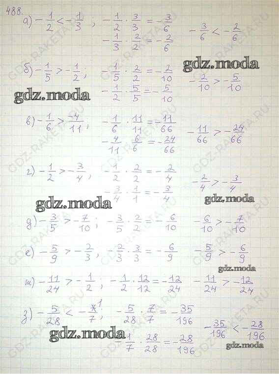 ОТВЕТ на задание № 488 Учебник по Математике 6 класс Никольский МГУ - школе