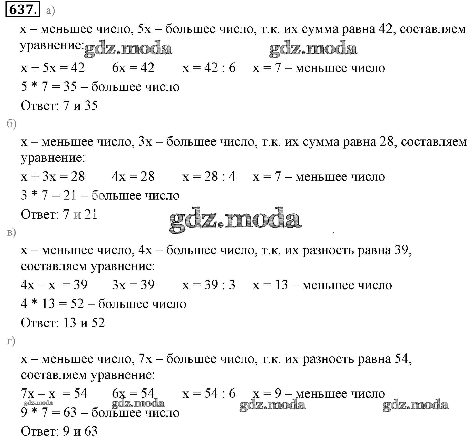 ОТВЕТ на задание № 637 Учебник по Математике 6 класс Никольский МГУ - школе