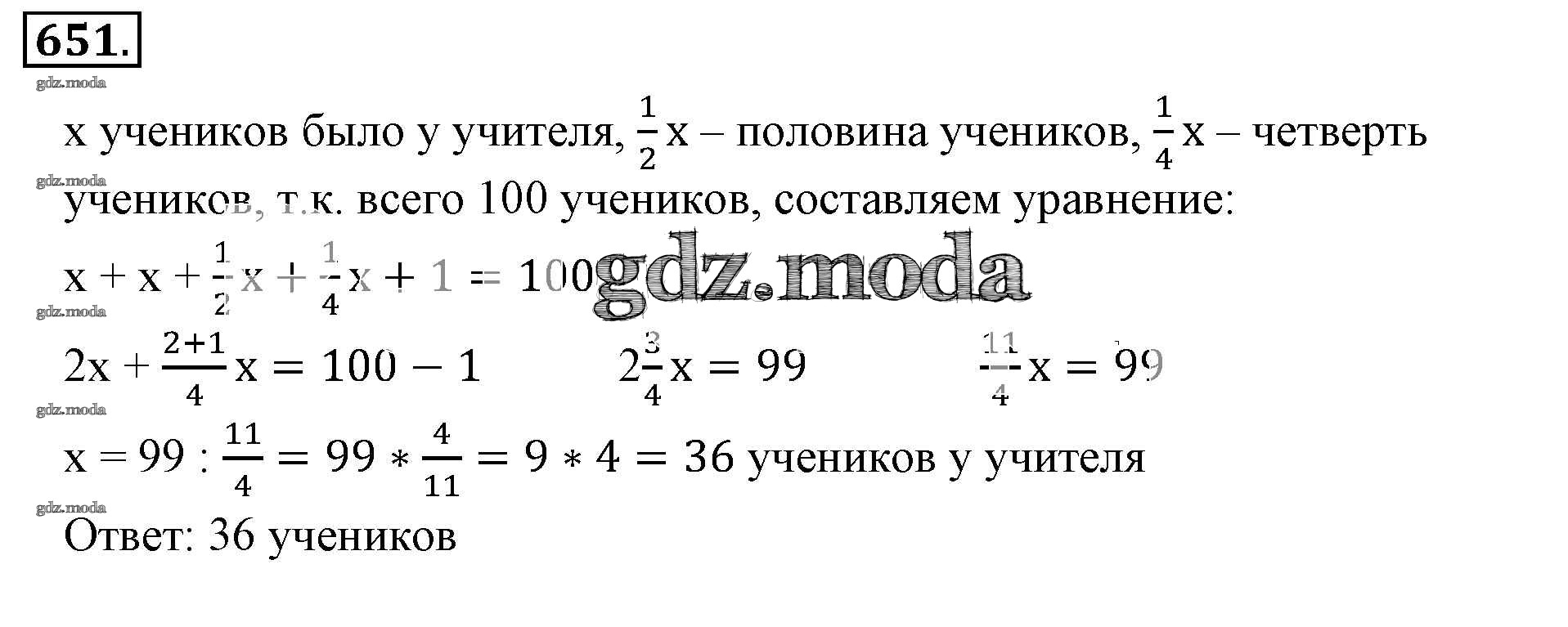 ОТВЕТ на задание № 651 Учебник по Математике 6 класс Никольский МГУ - школе