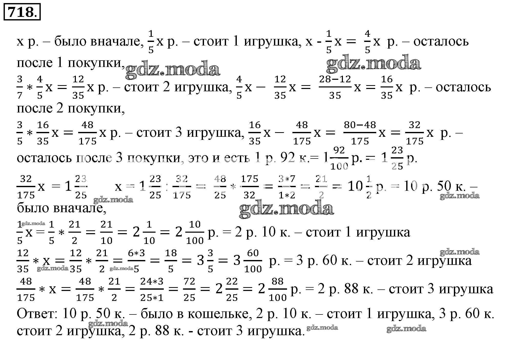 ОТВЕТ на задание № 718 Учебник по Математике 6 класс Никольский МГУ - школе