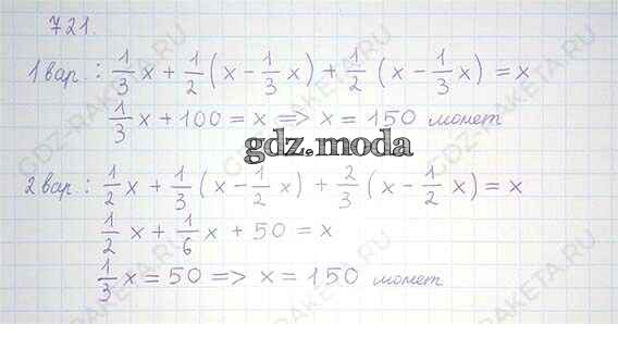 ОТВЕТ на задание № 721 Учебник по Математике 6 класс Никольский МГУ - школе