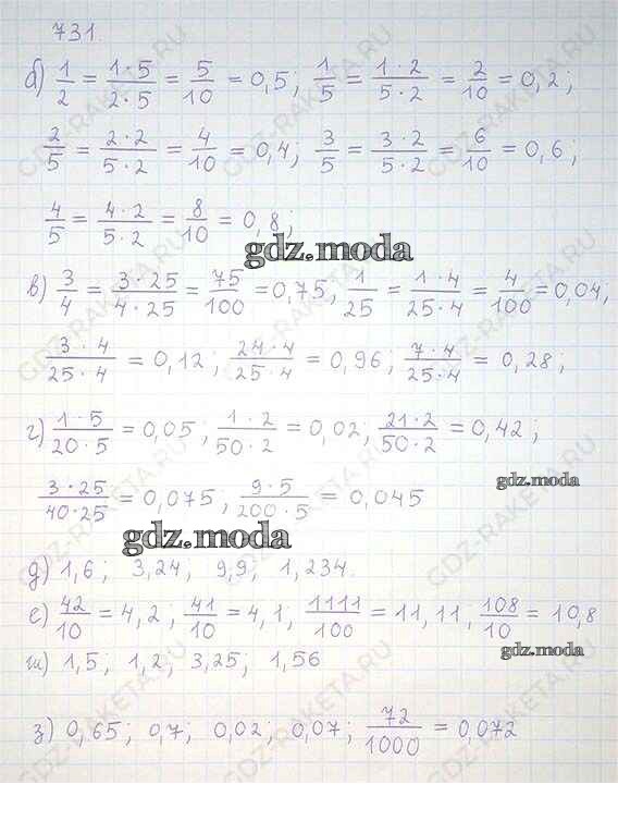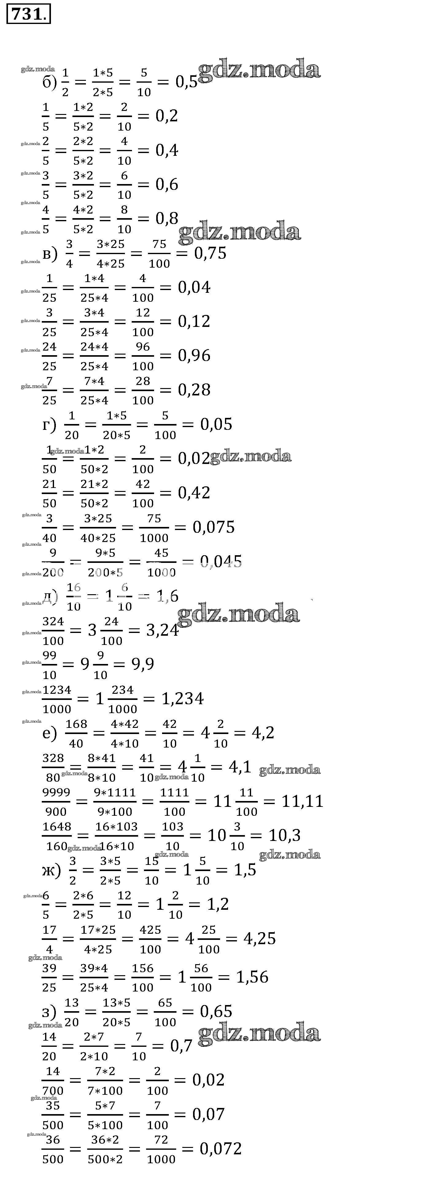 ОТВЕТ на задание № 731 Учебник по Математике 6 класс Никольский МГУ - школе