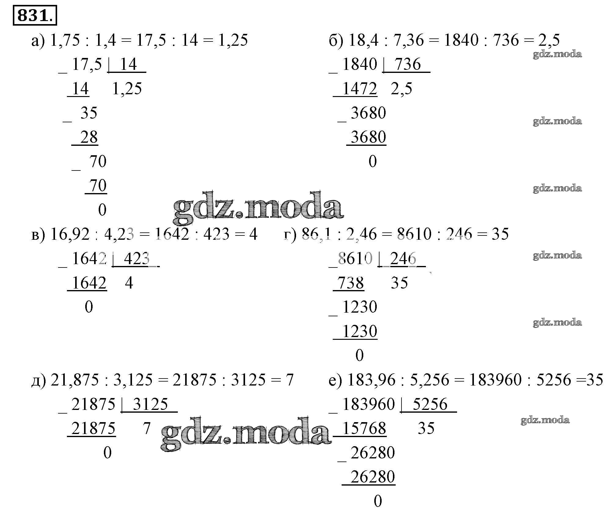ОТВЕТ на задание № 831 Учебник по Математике 6 класс Никольский МГУ - школе