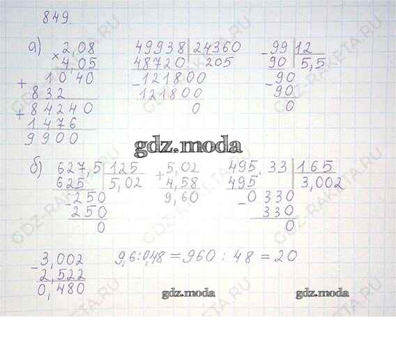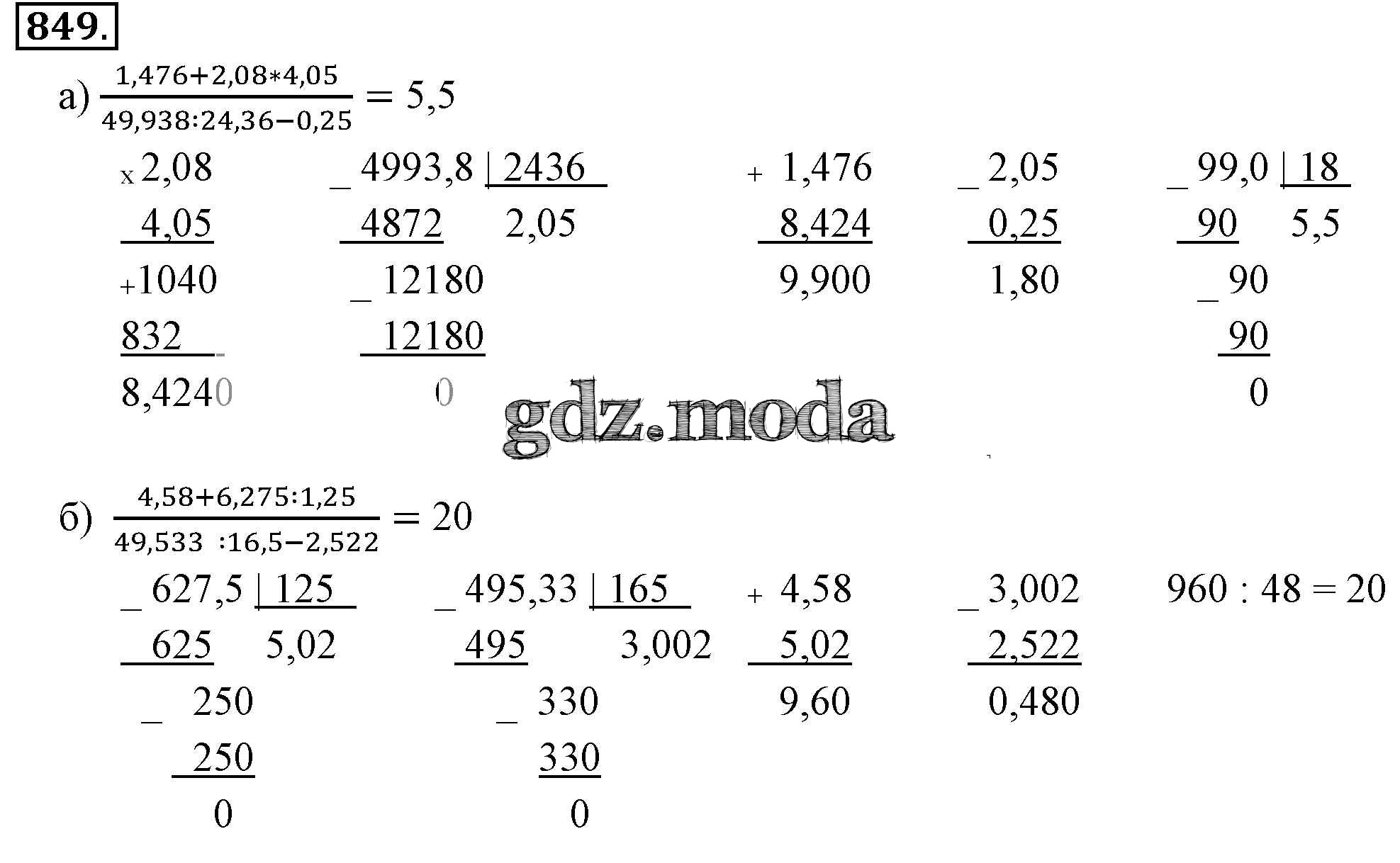 ОТВЕТ на задание № 849 Учебник по Математике 6 класс Никольский МГУ - школе