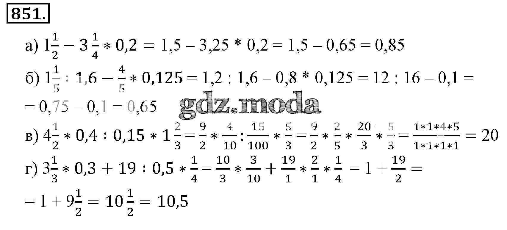 ОТВЕТ на задание № 851 Учебник по Математике 6 класс Никольский МГУ - школе
