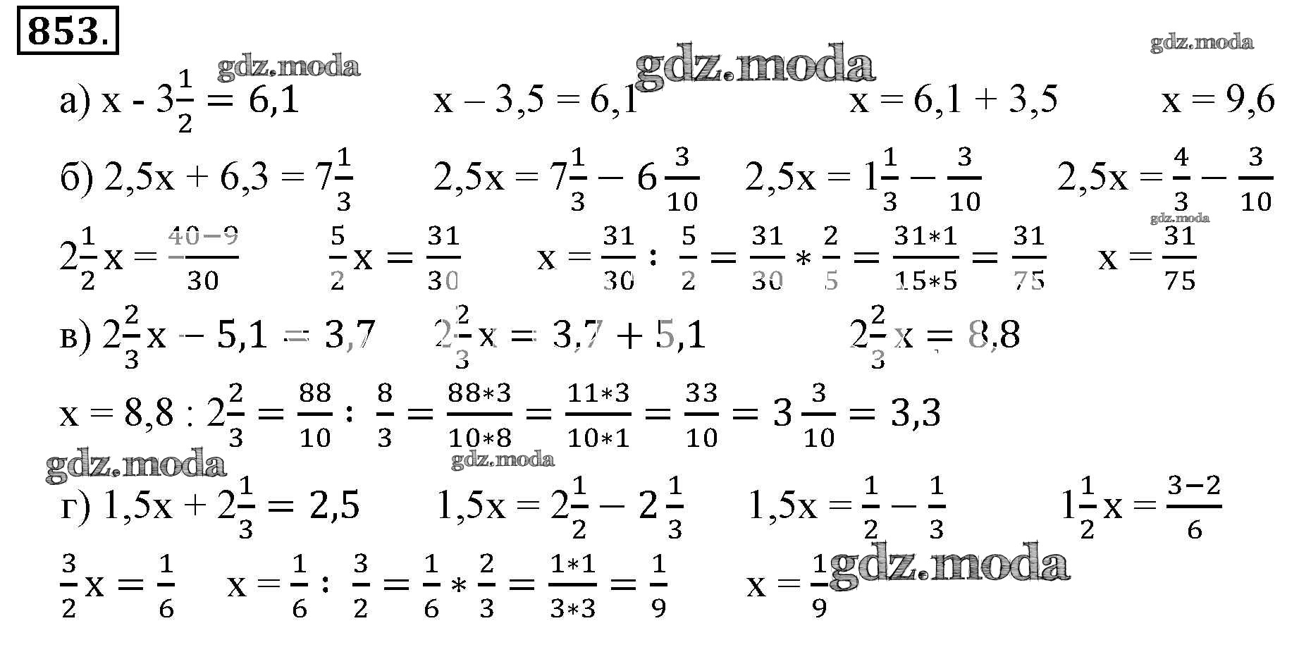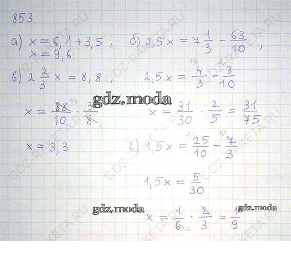 ОТВЕТ на задание № 853 Учебник по Математике 6 класс Никольский МГУ - школе